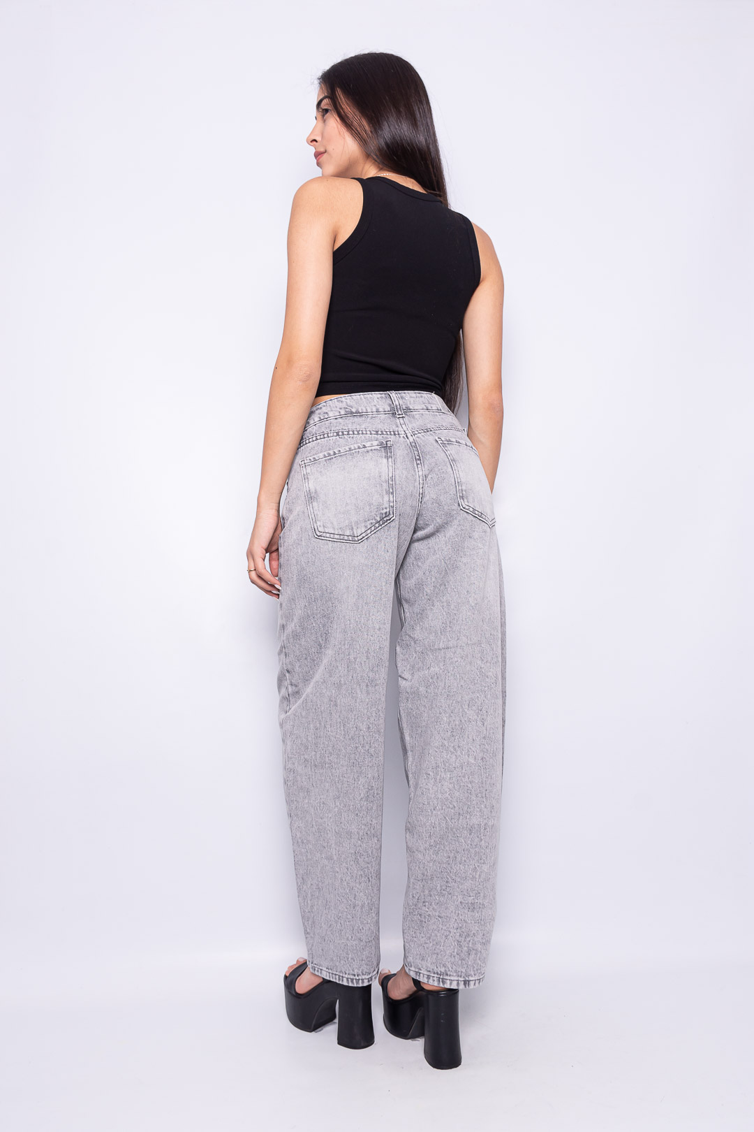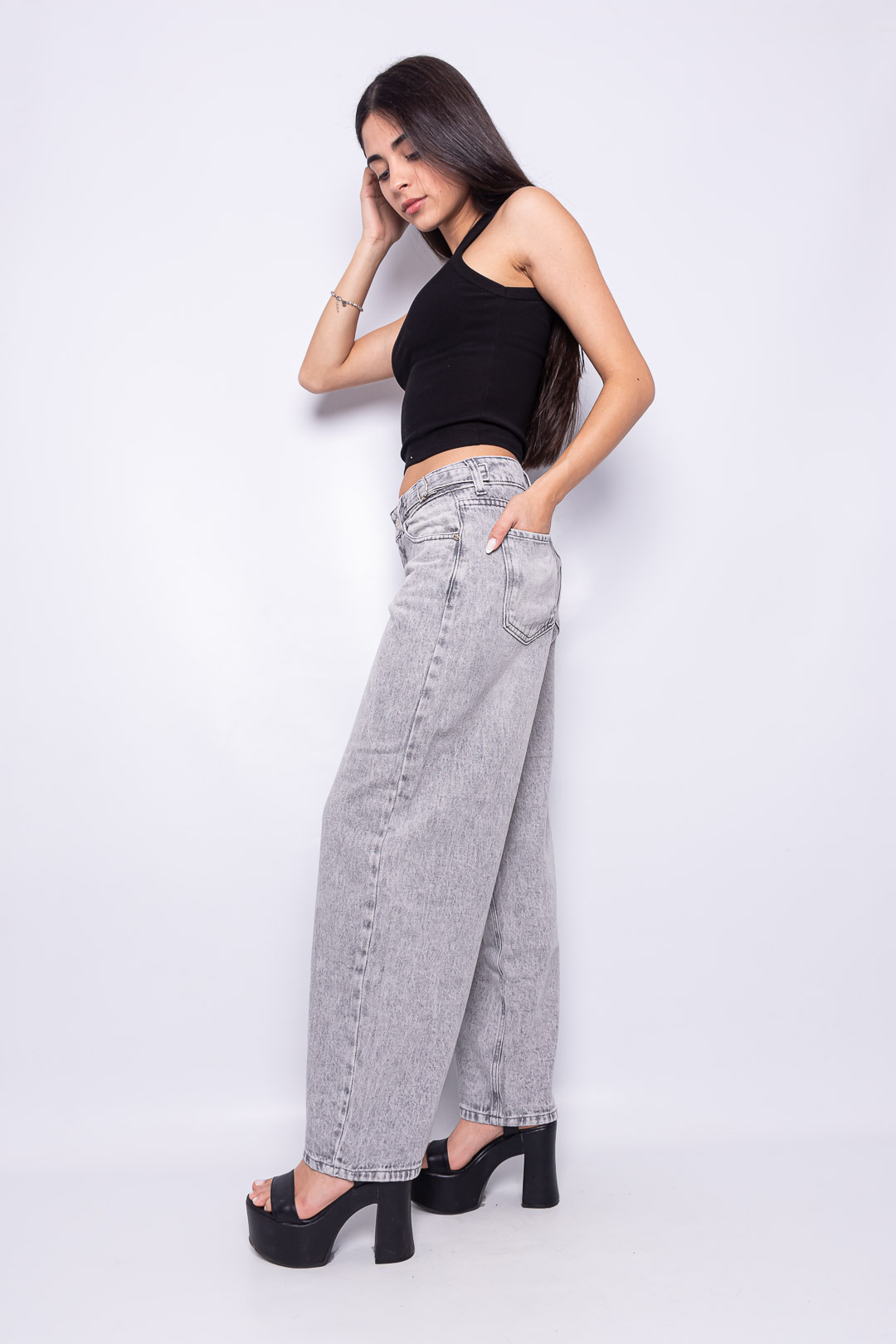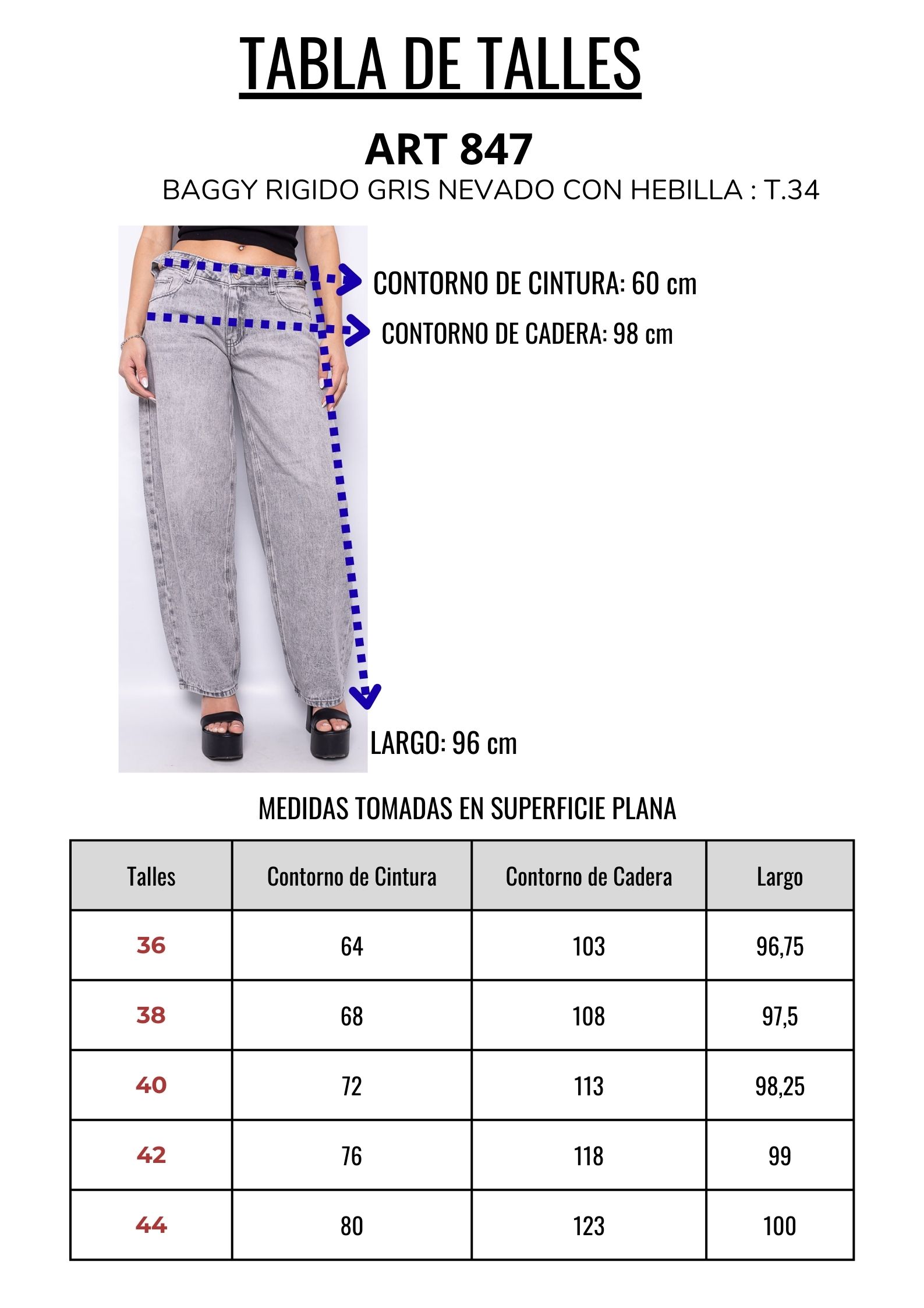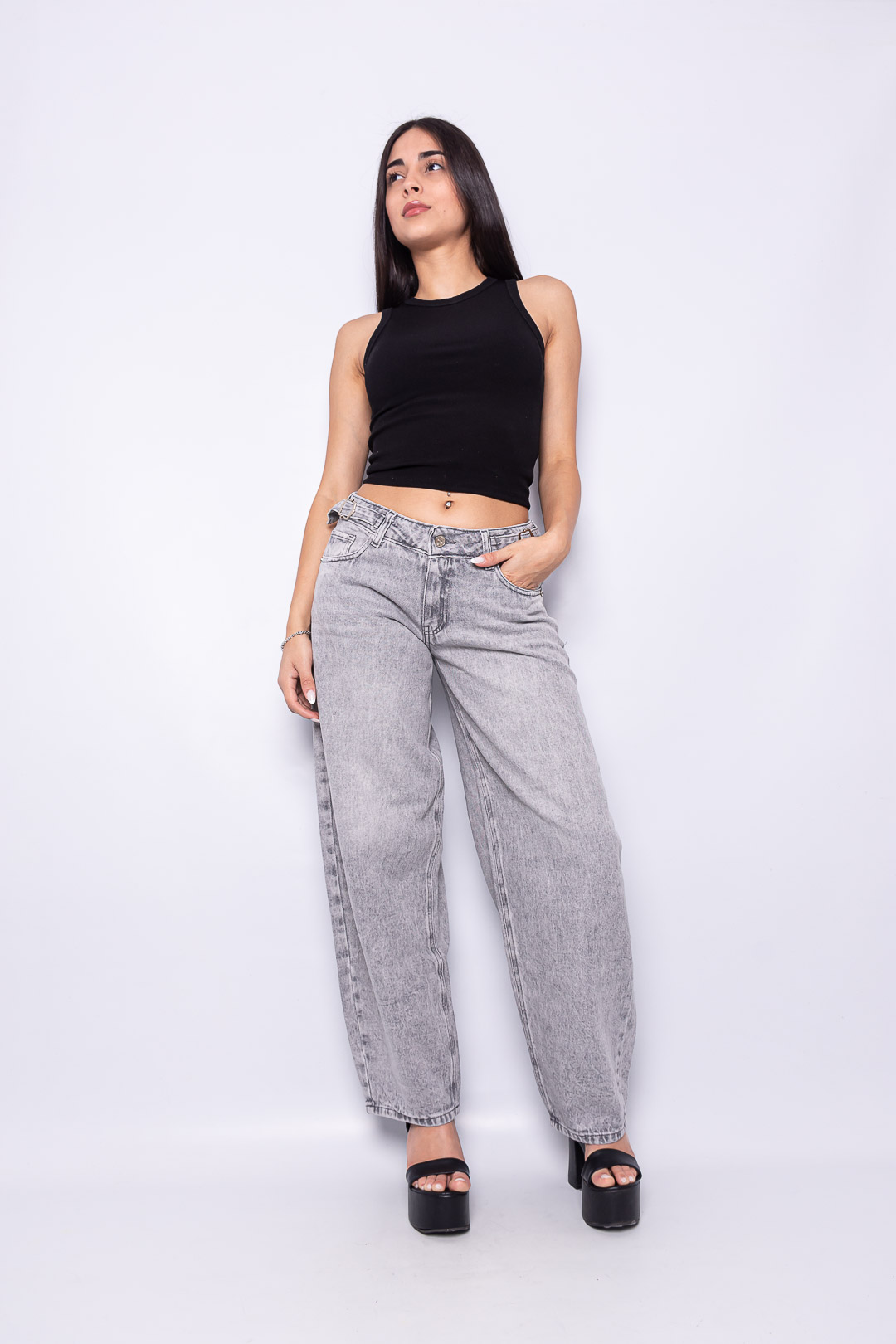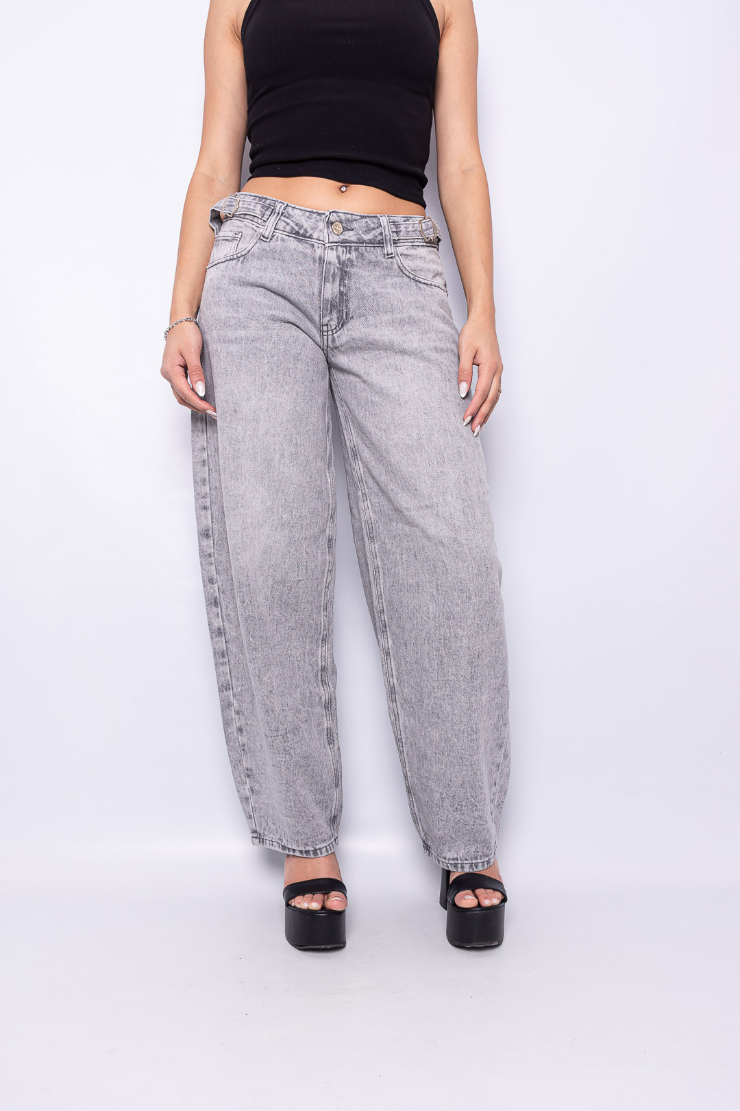 Baggy gris nevado tiro bajo con hebilla lateral