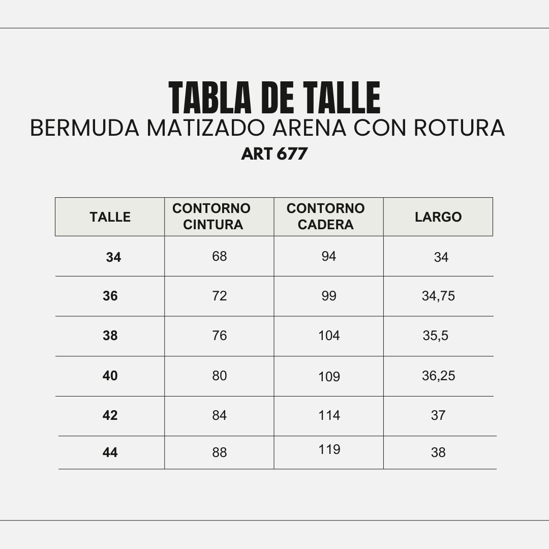 Sé el primero en valorar “Bermuda rígido con rotura matizado arena ruedo desflecado”
