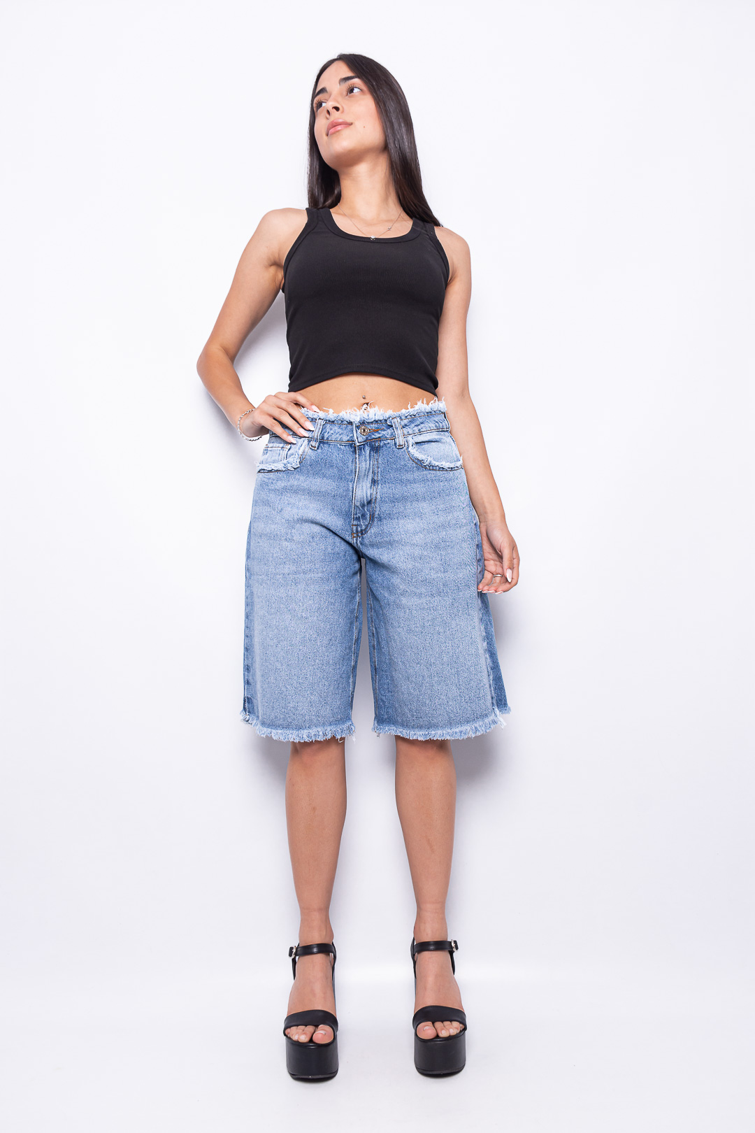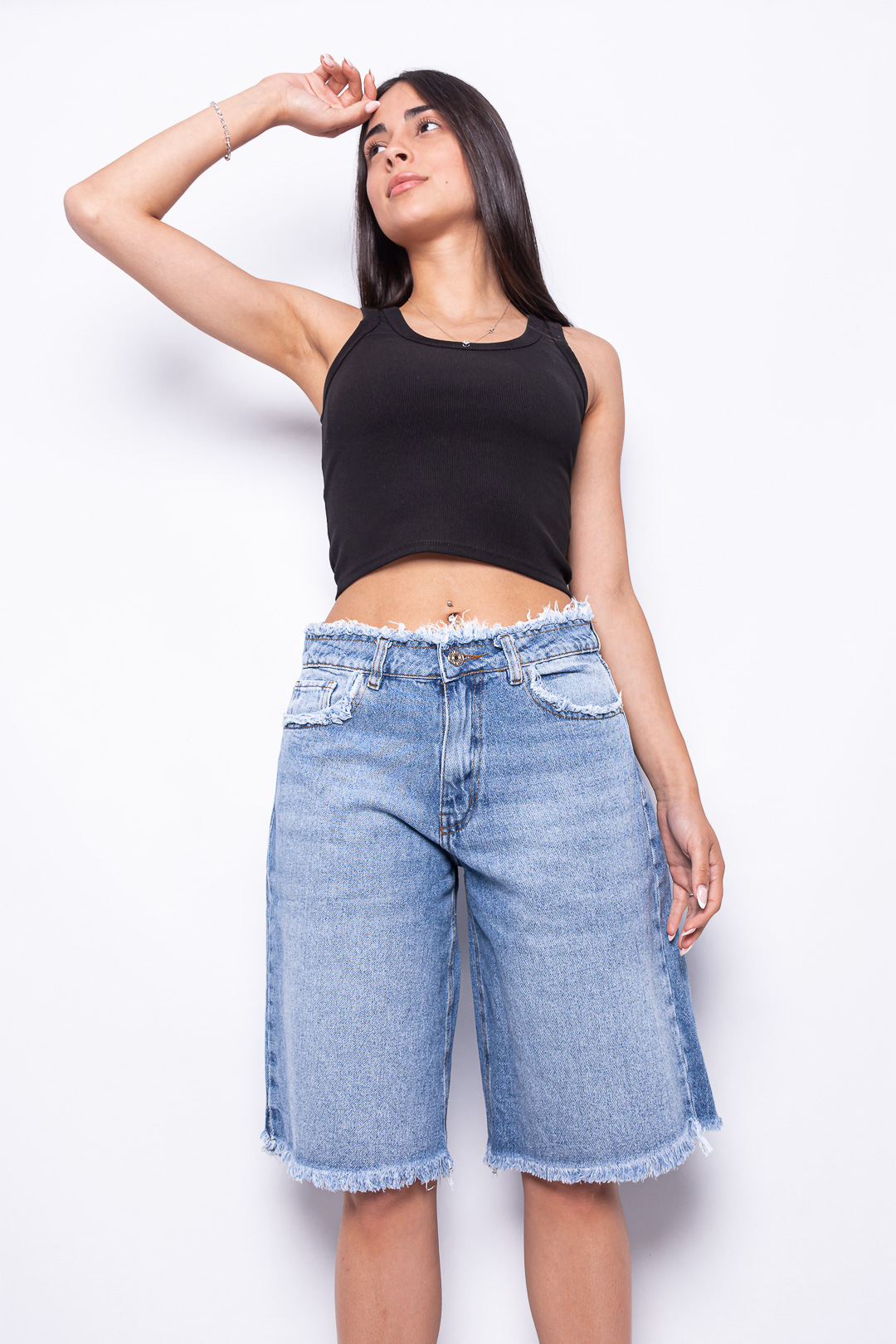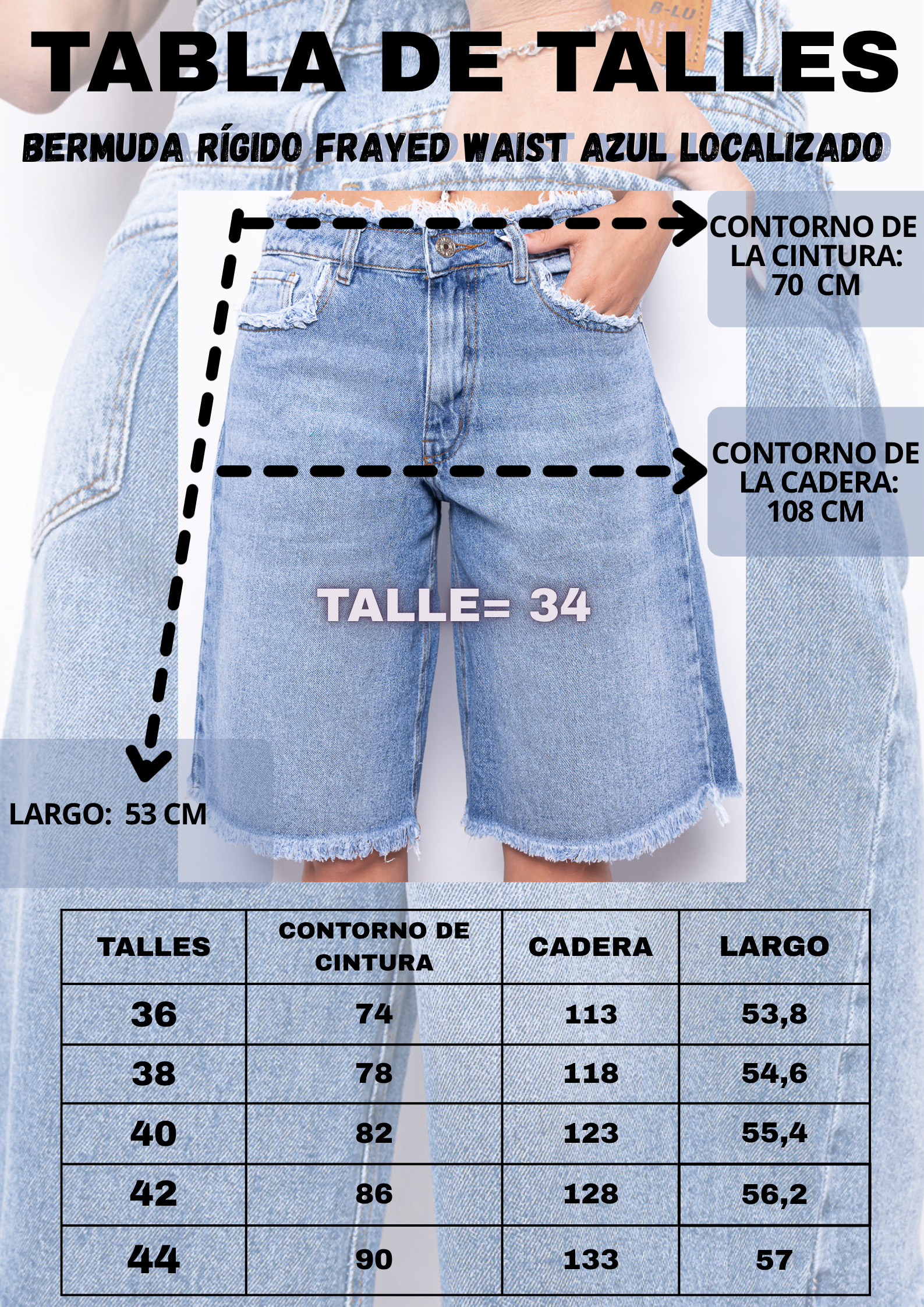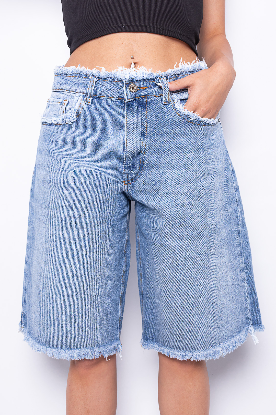 Bermuda rígido Frayed Waist Azul localizado ruedo Desflecado