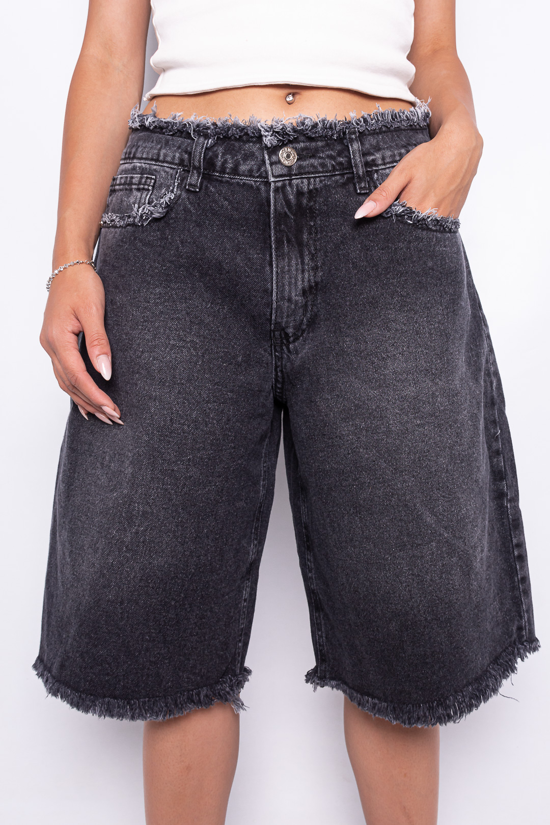 Bermuda rígido Frayed Waist black localizado ruedo Desflecado