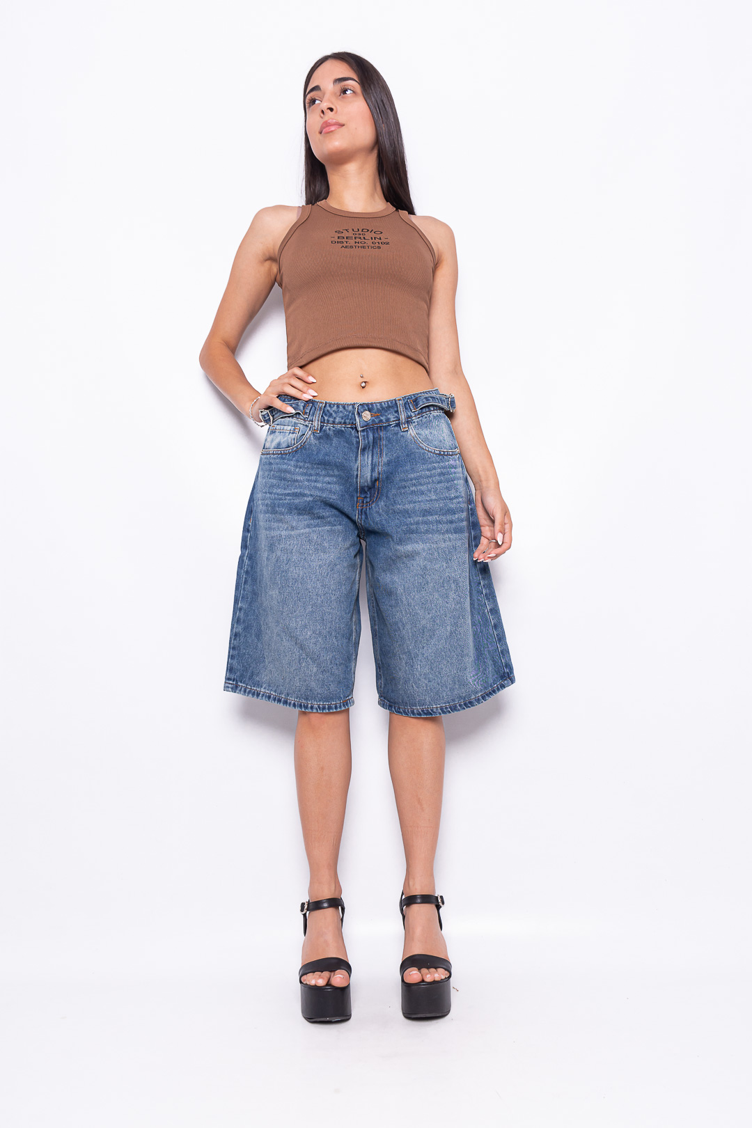 Bermuda rígido MATIZADO Con Hebilla Lateral