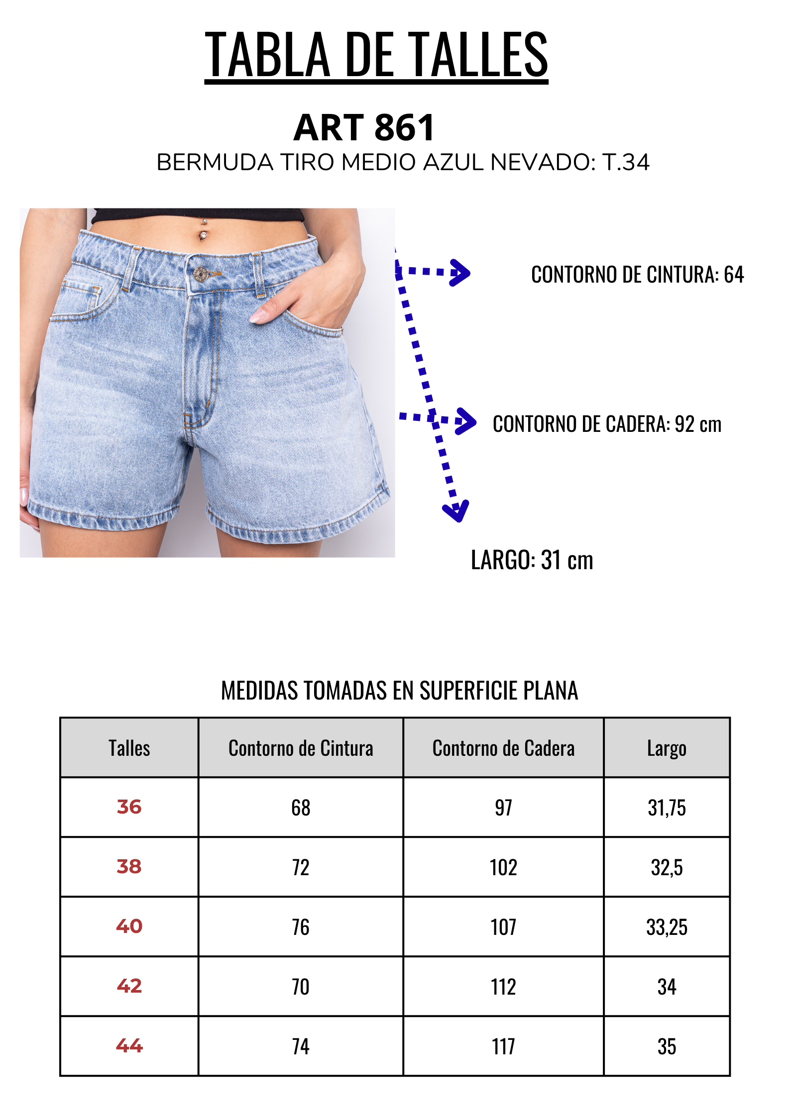 Bermuda tiro medio AZUL nevado