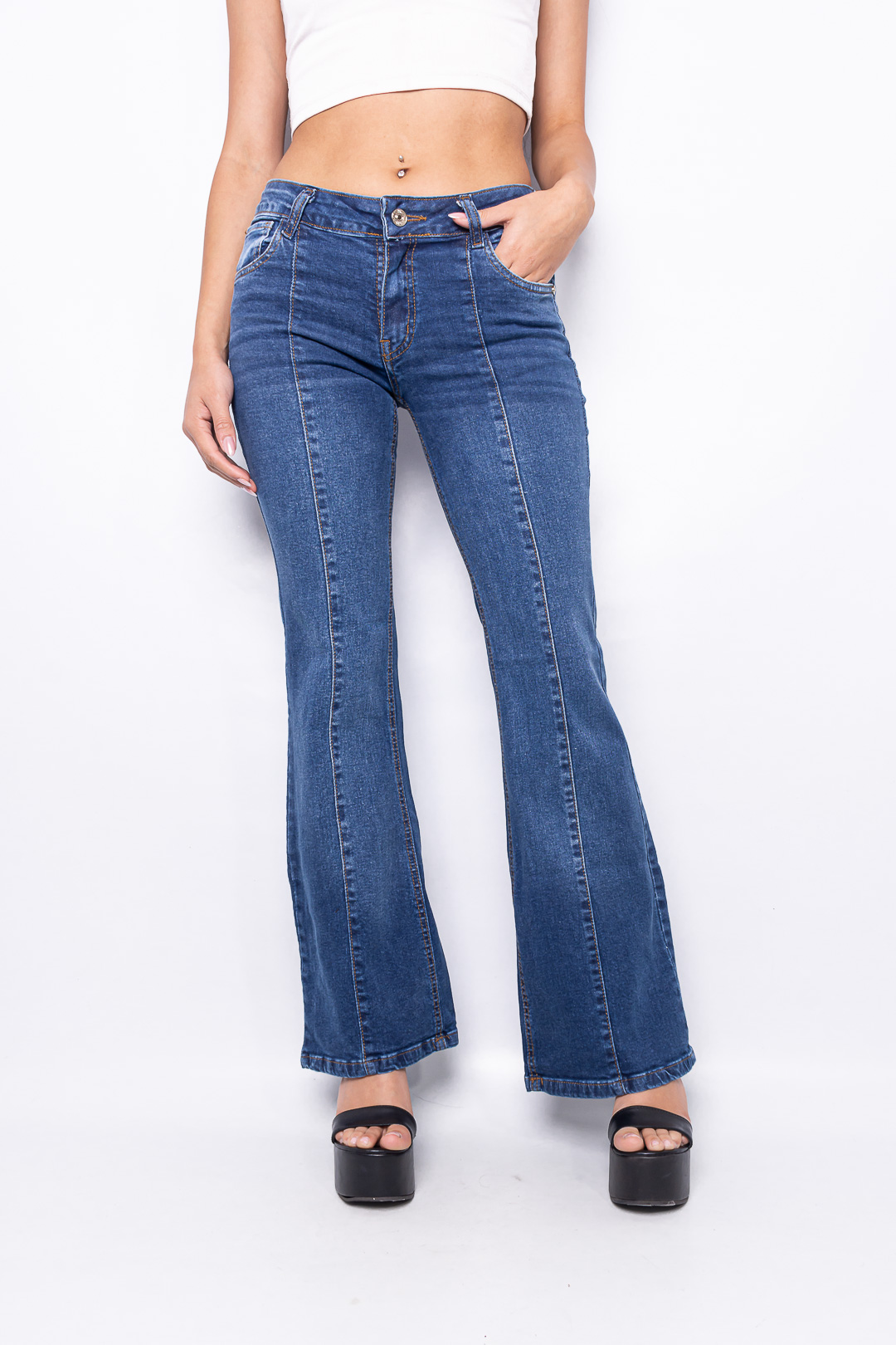 Oxford Flare elastizado azul ruedo normal