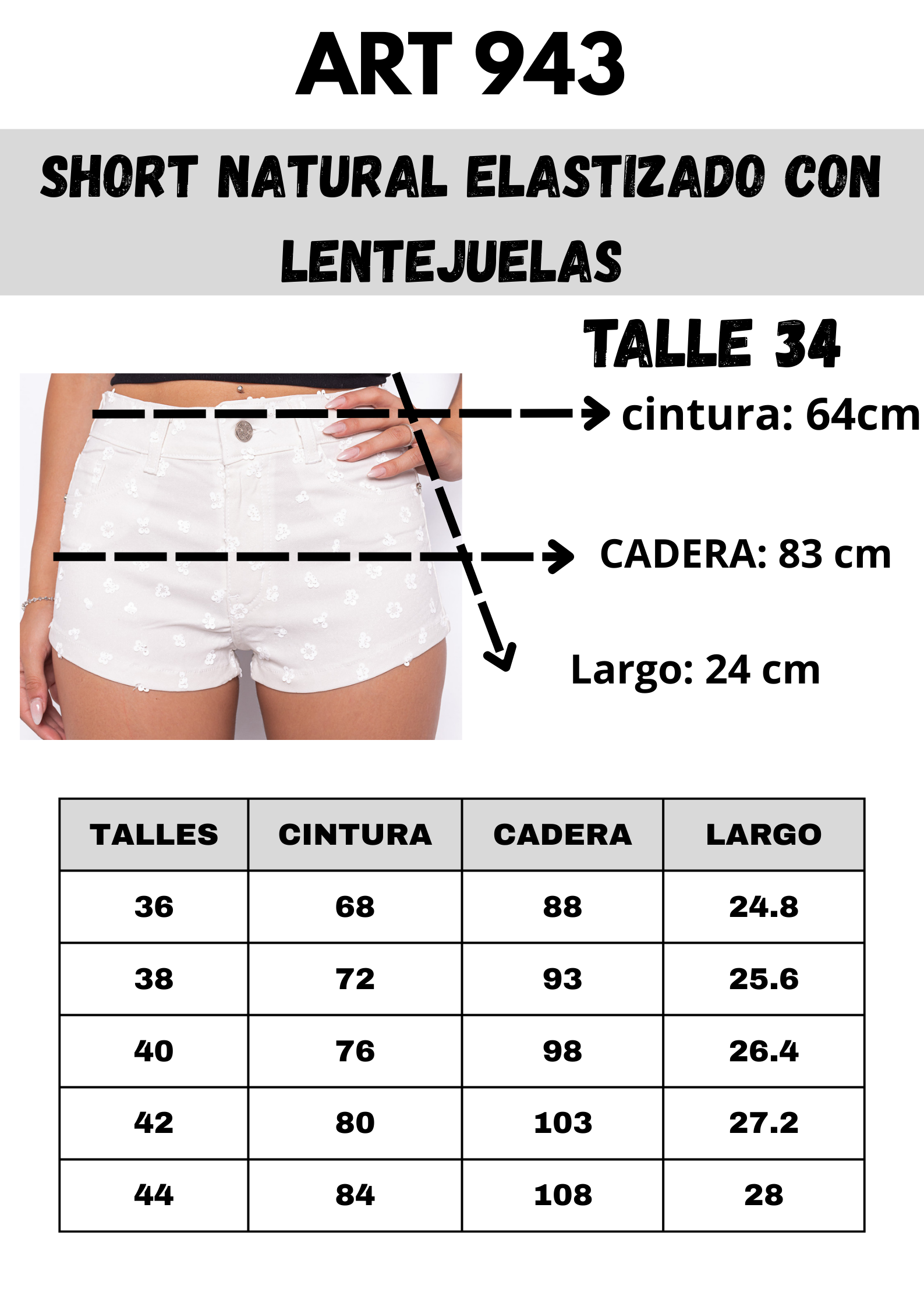 Short natural elastizado con LENTEJUELAS