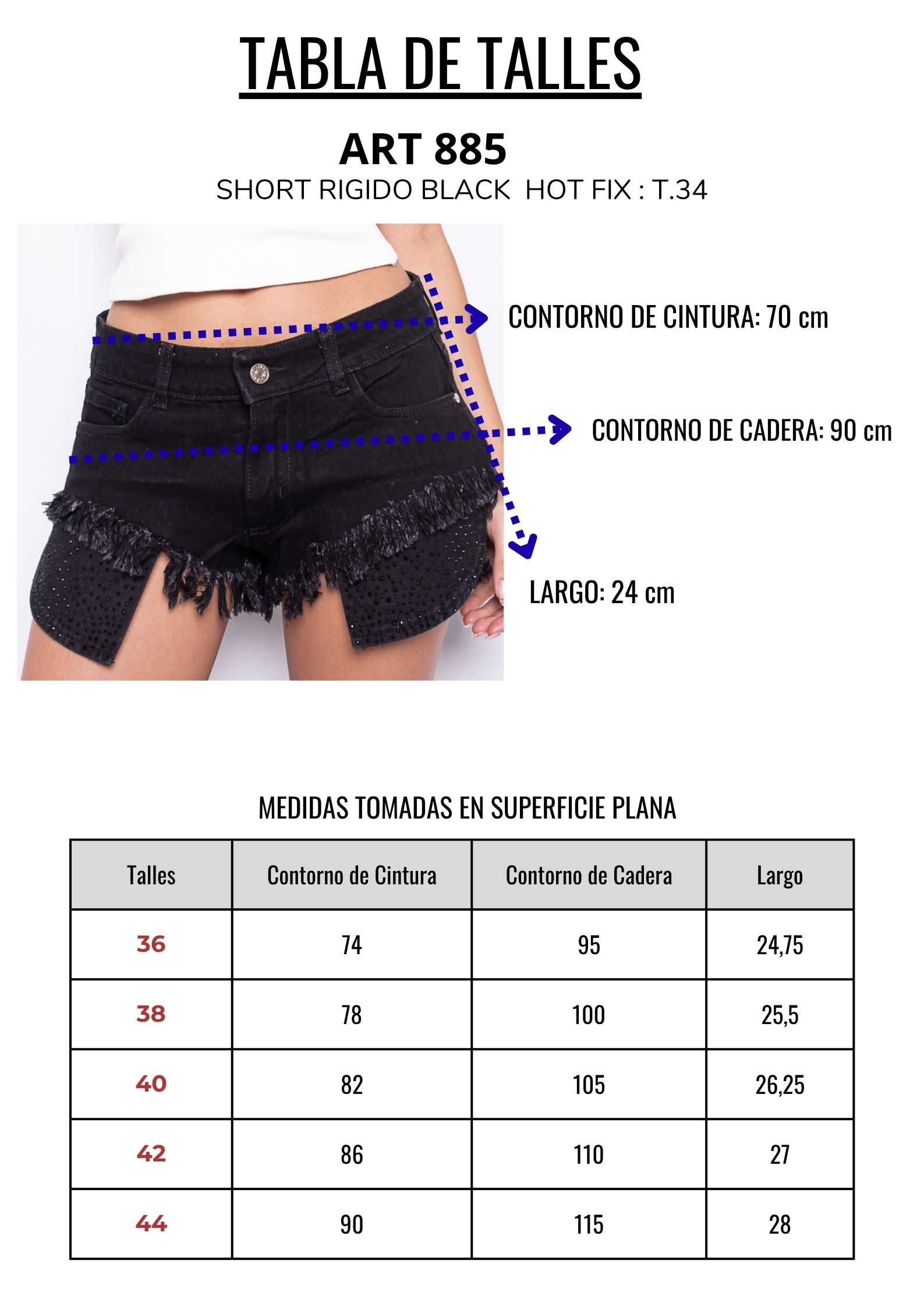 Short rígido BLACK HOT FIX tiro bajo ruedo desflecado