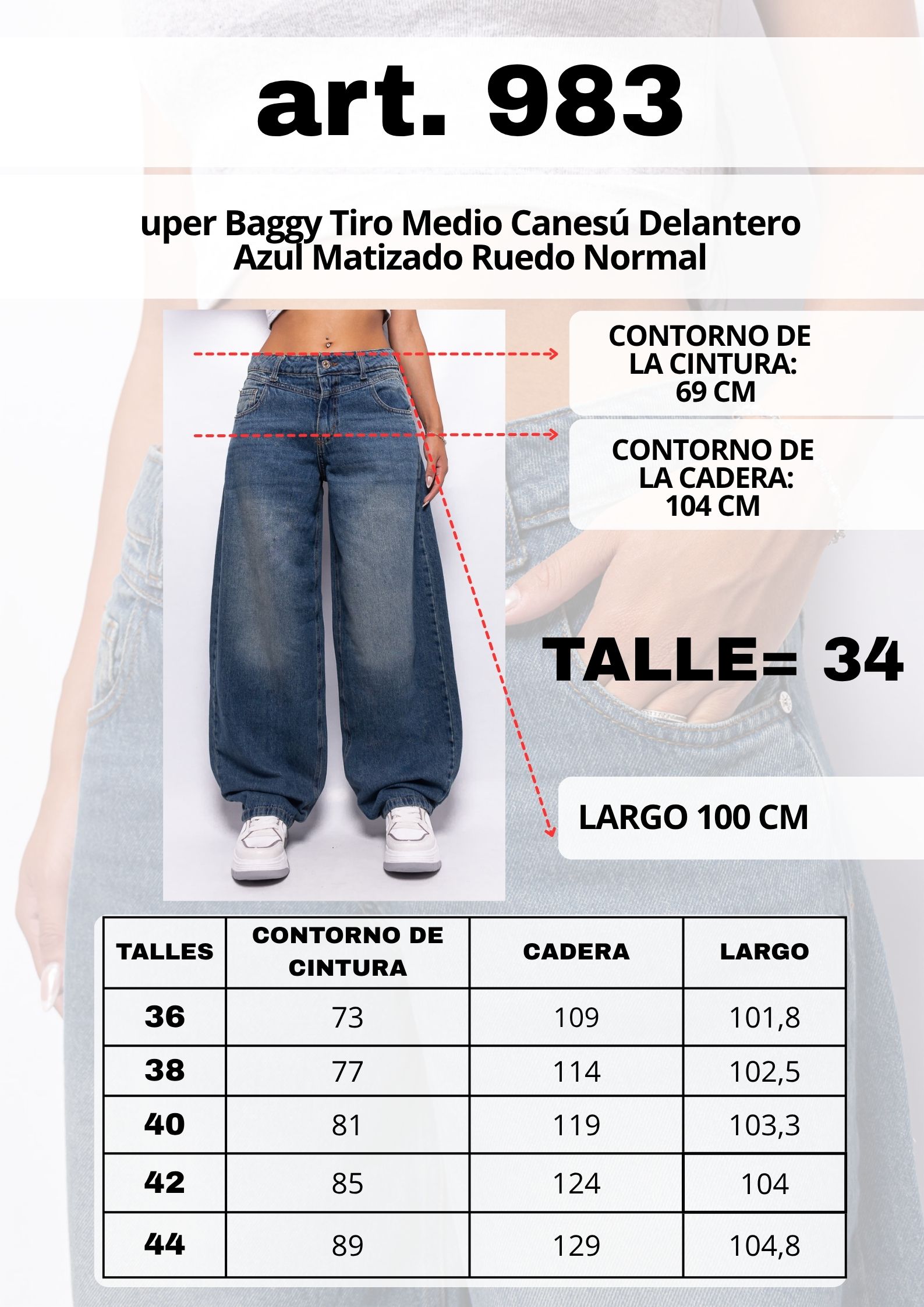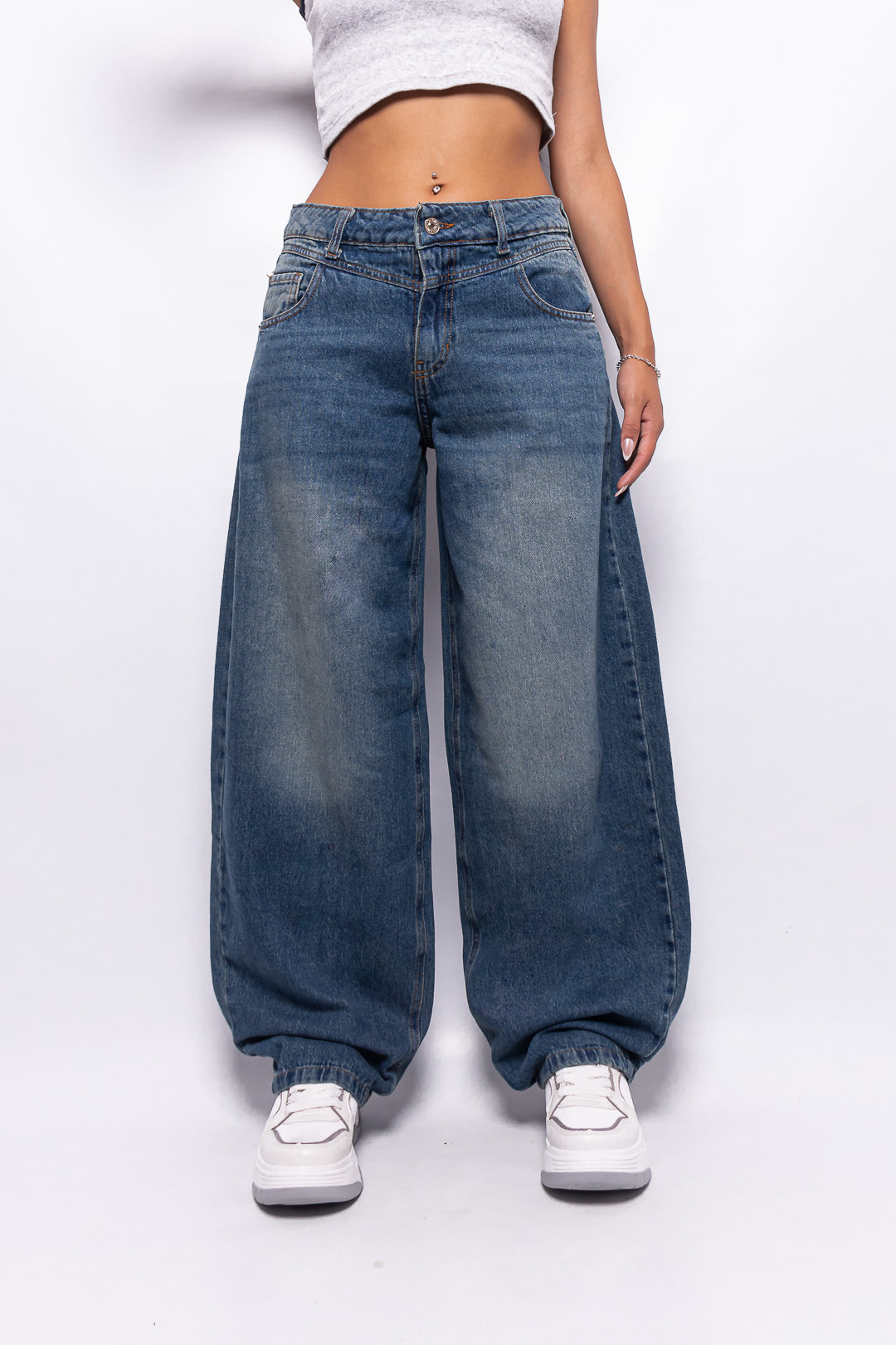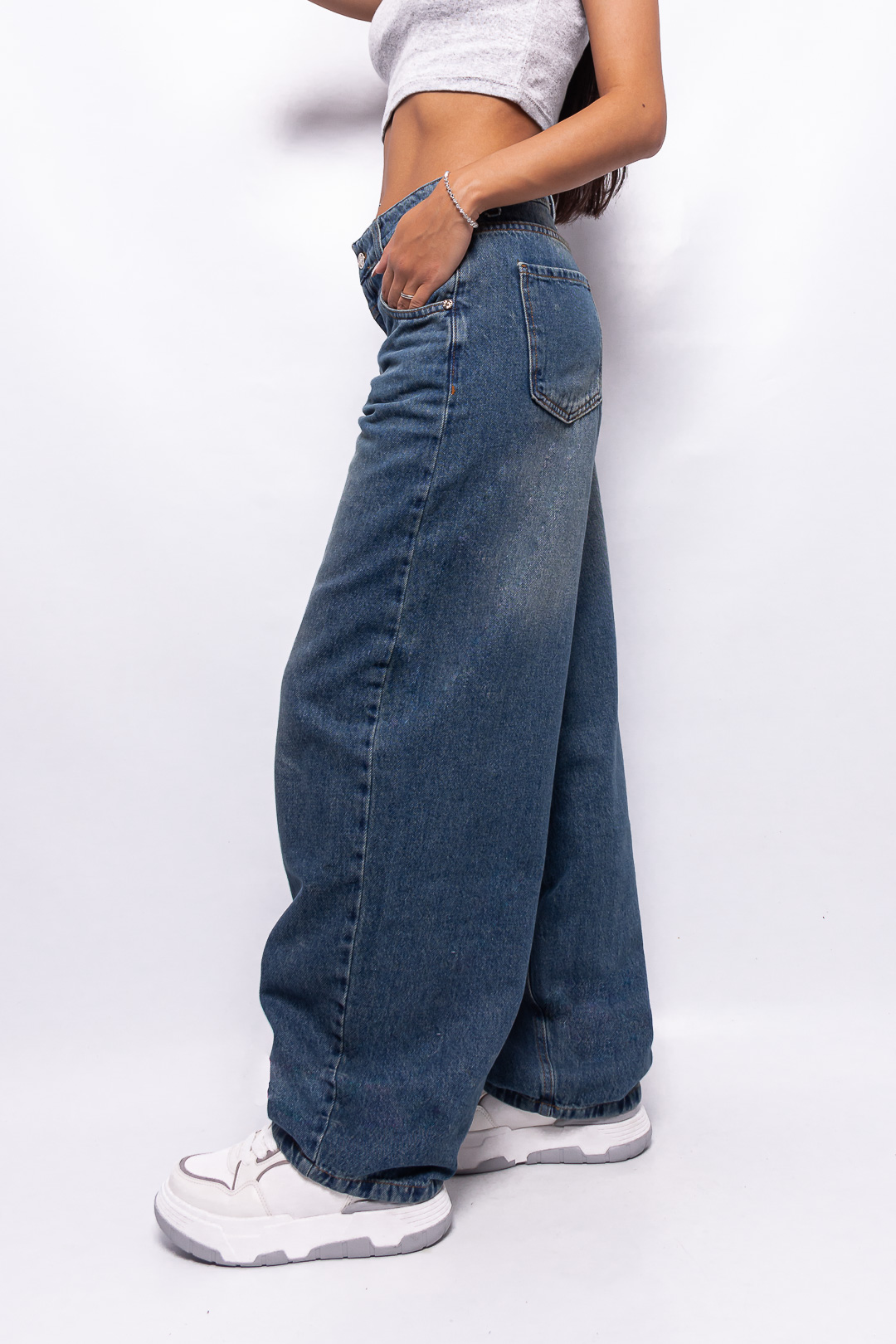 Super Baggy Tiro Medio Canesú Delantero Azul Matizado Ruedo Normal