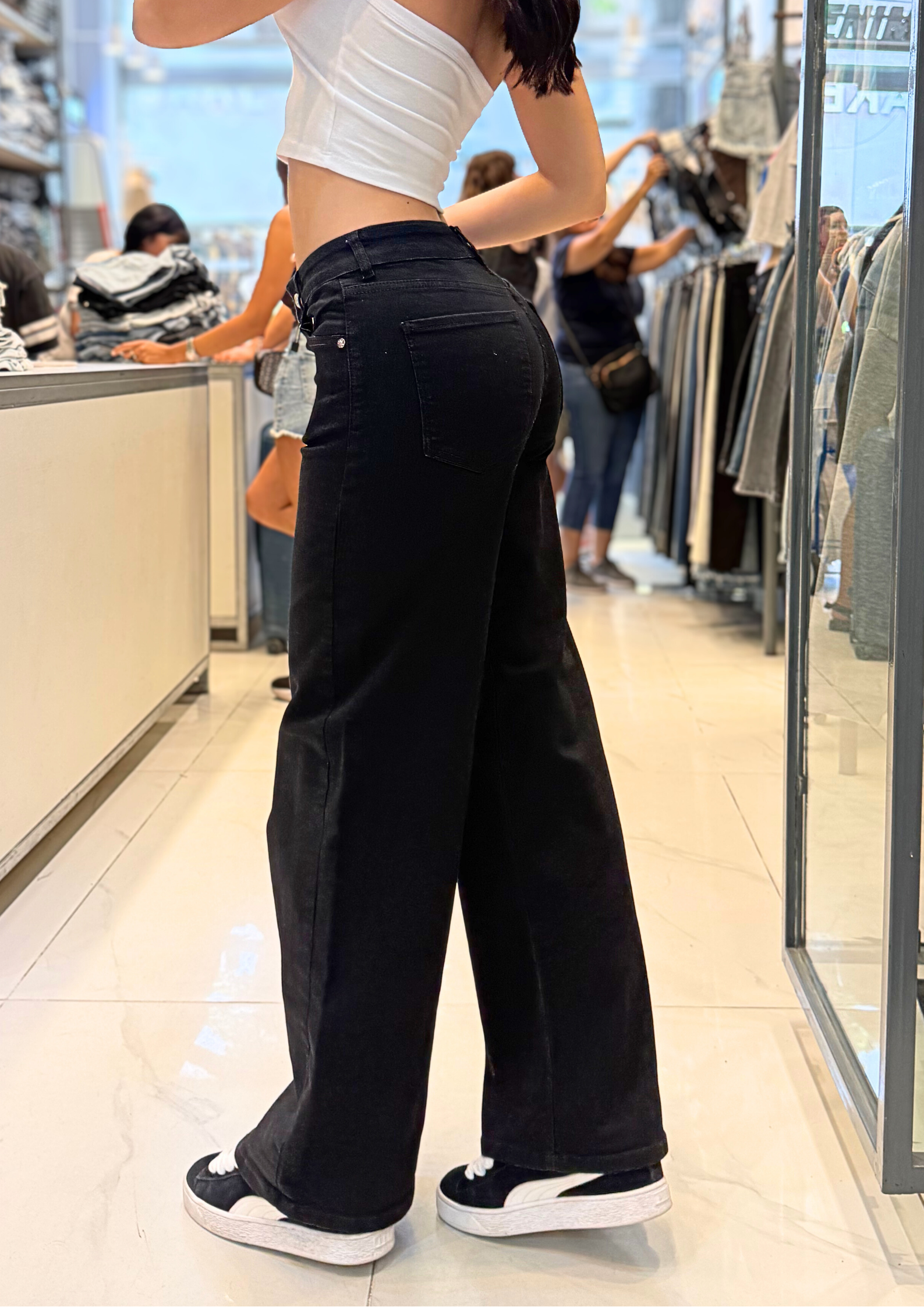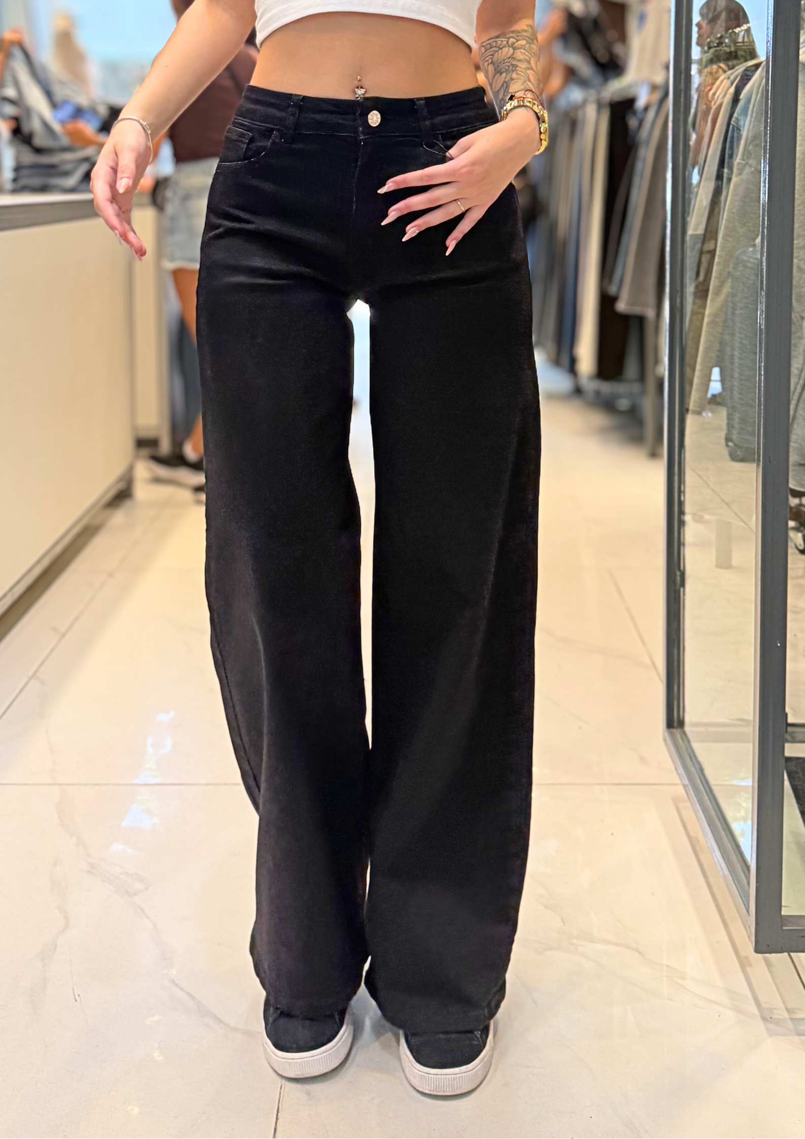 Sé el primero en valorar “Wide Leg Black Elastizado Tiro Medio Ruedo Normal”