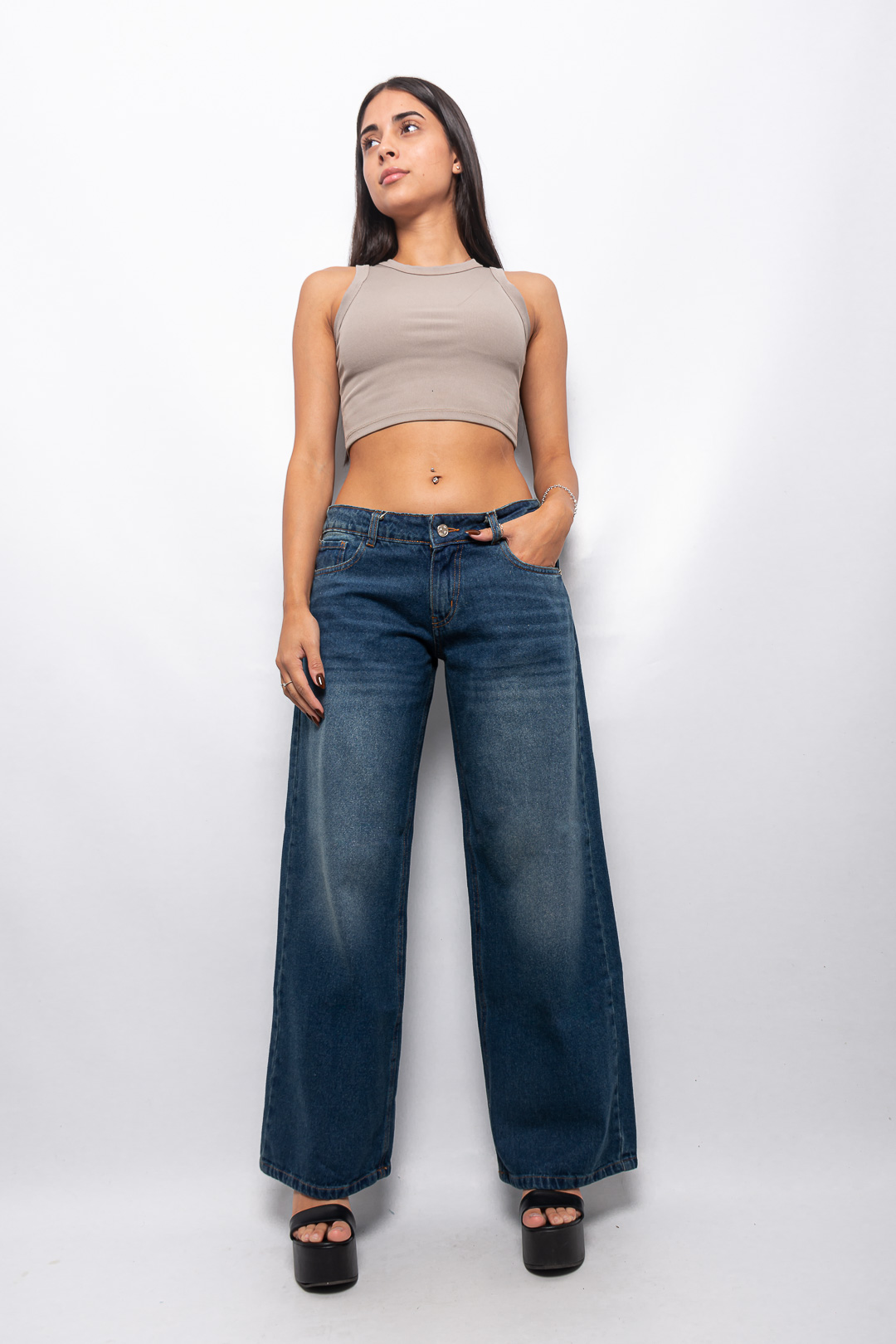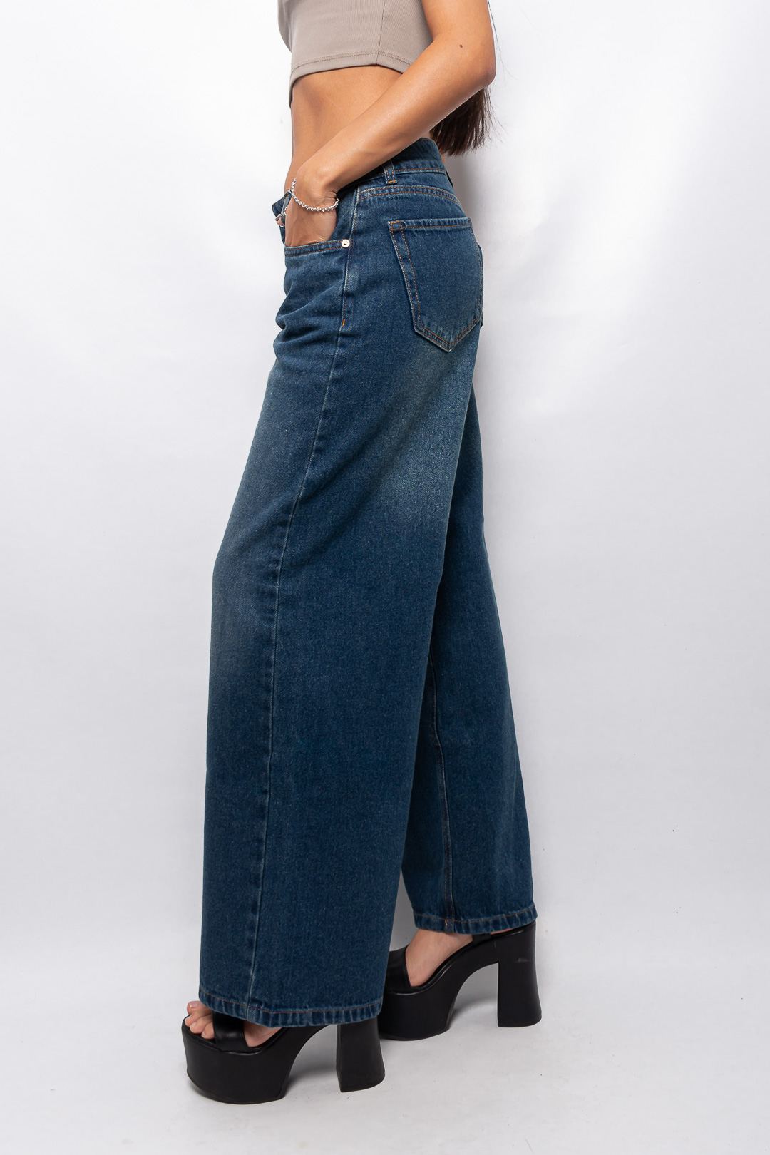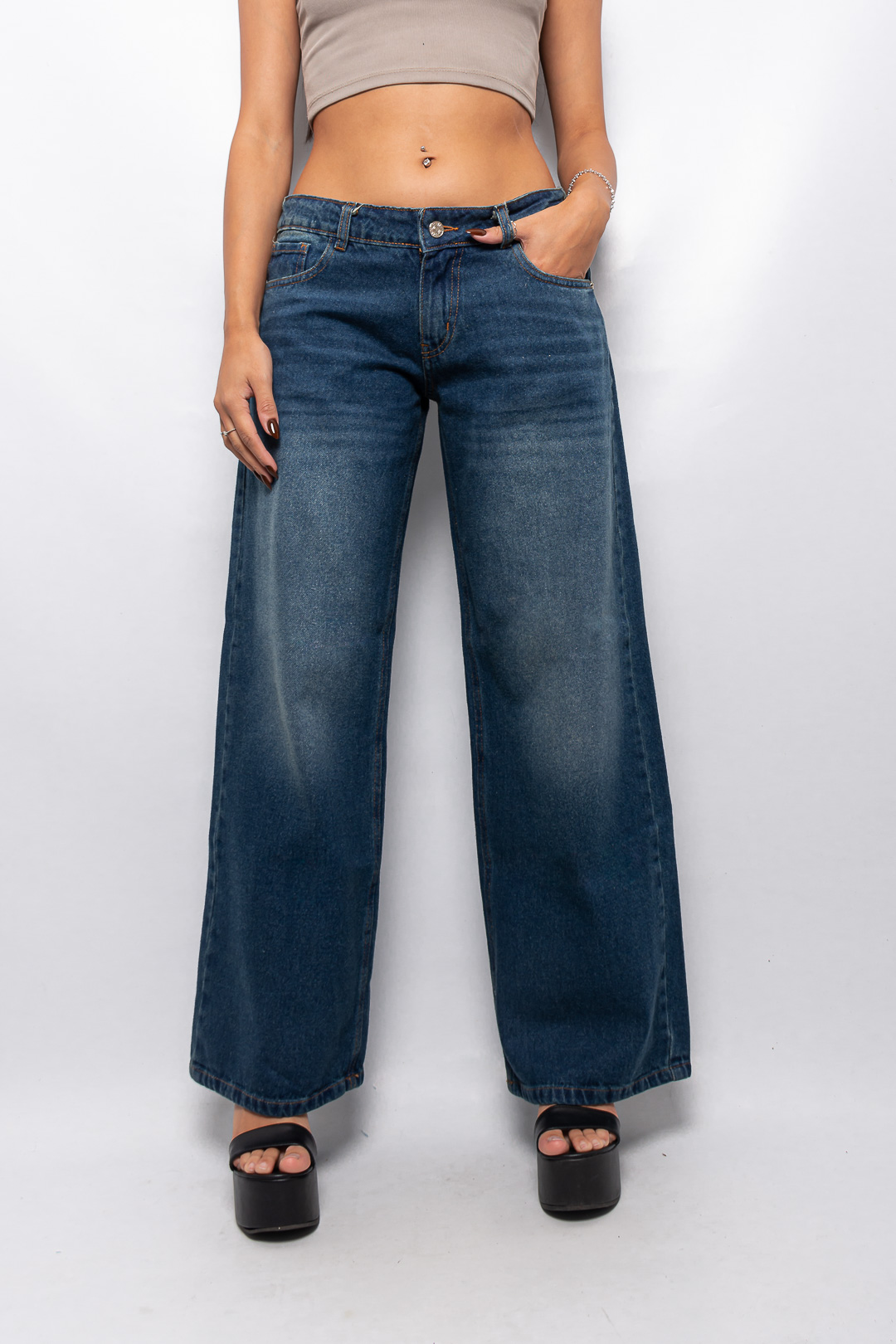 Sé el primero en valorar “Wide leg rígido azul matizado tiro bajo ruedo normal”