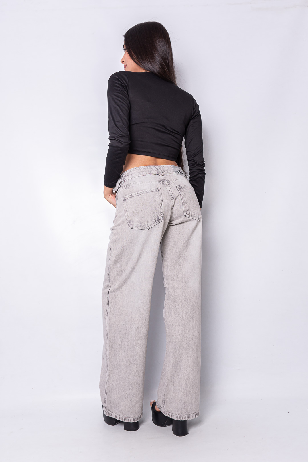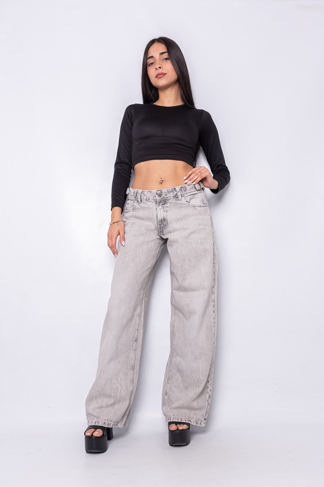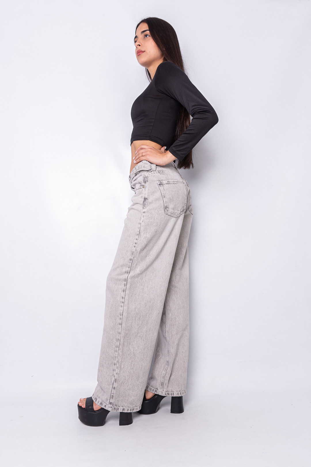 Wide leg rigido Gris claro con hebilla lateral regulable