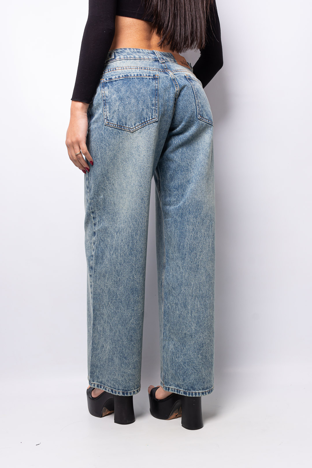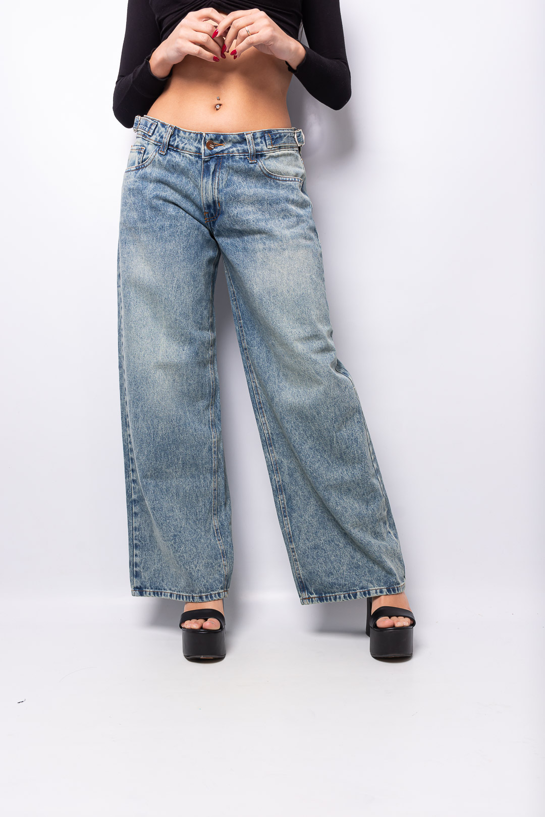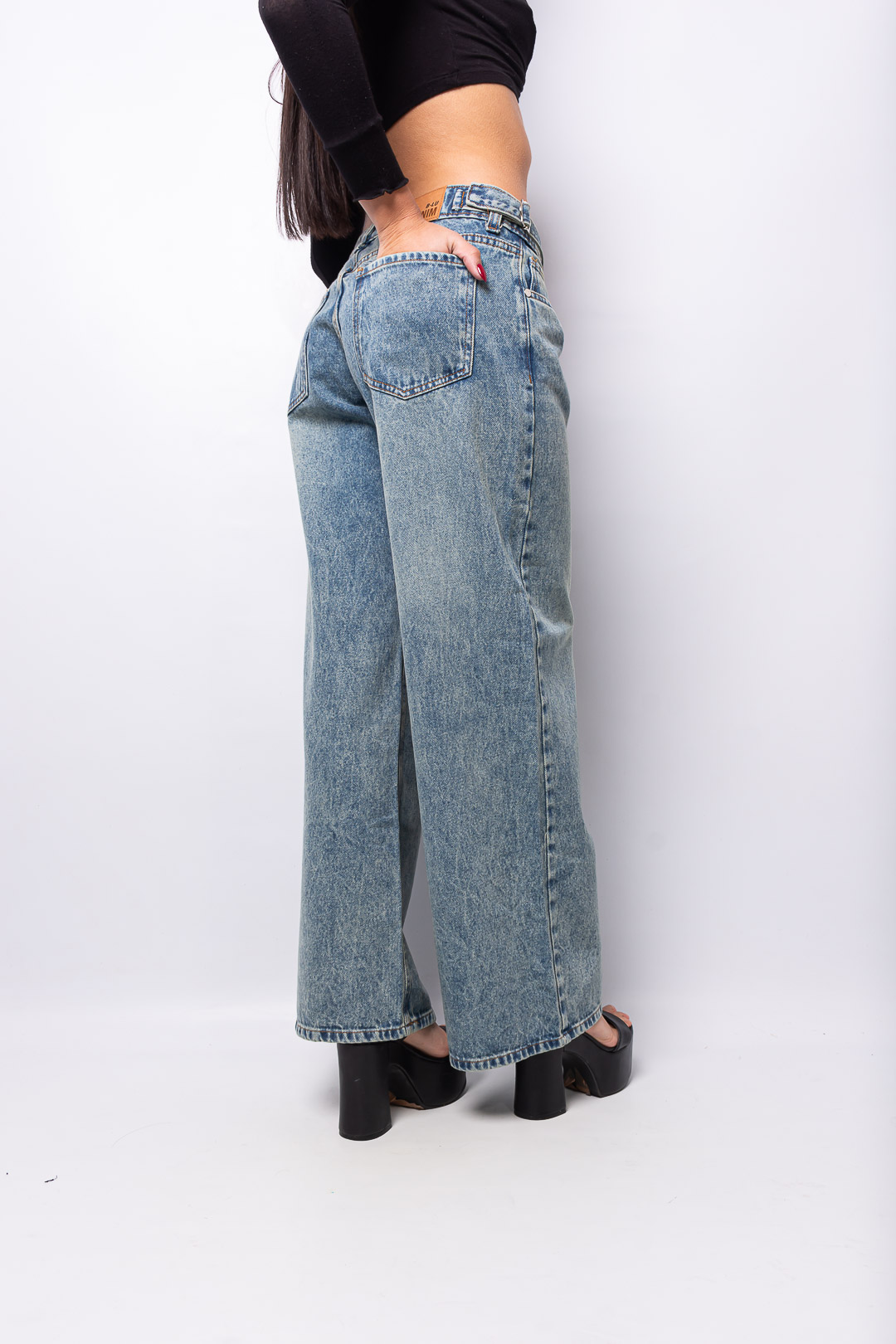 Wide leg rígido matizado arena tiro bajo con hebillas lateral