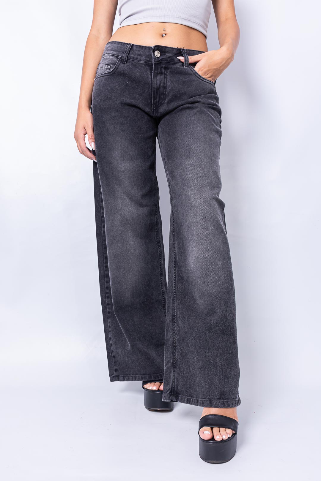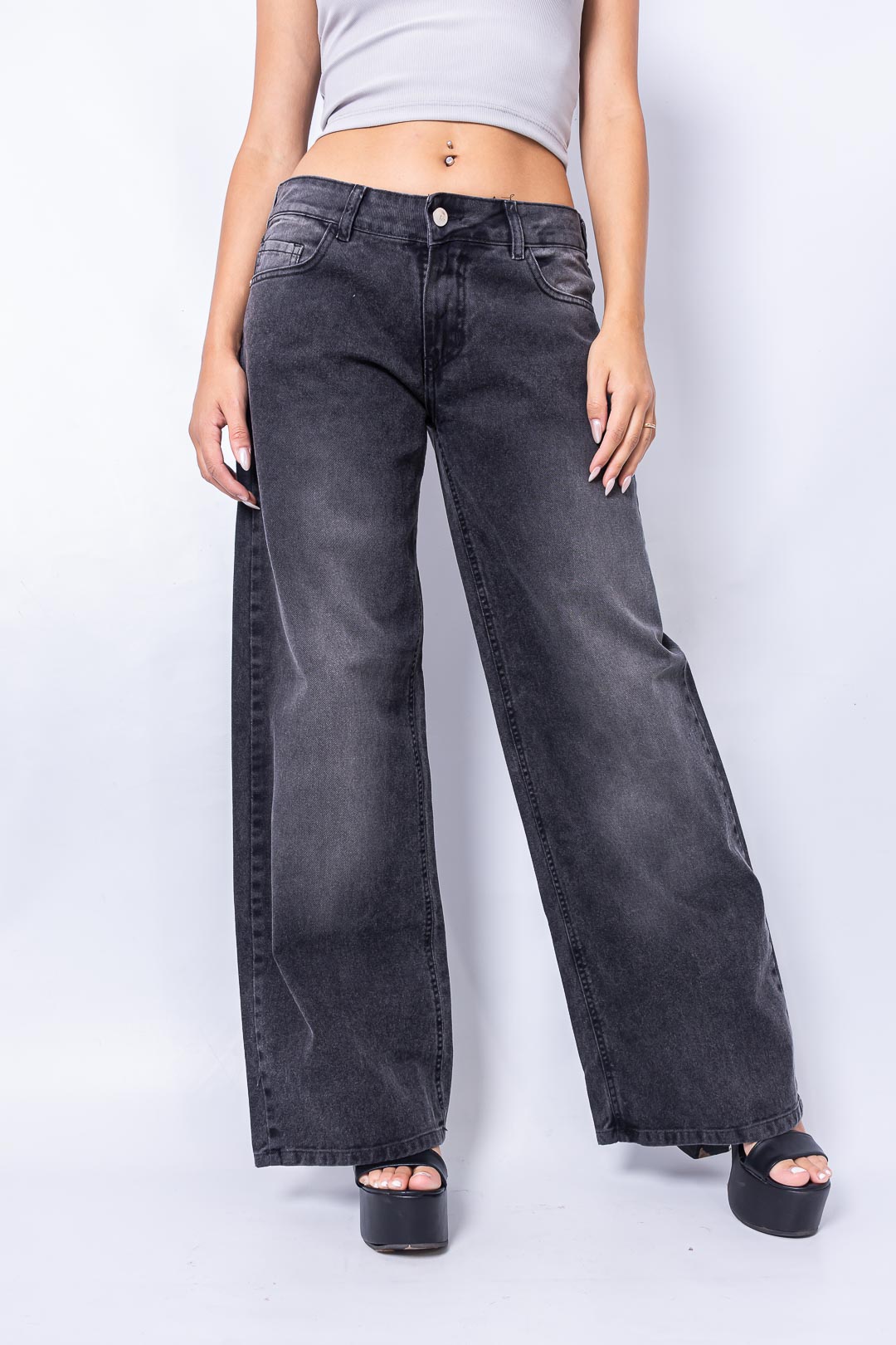 Wide leg Straight low waist rígido stone localizado ruedo normal