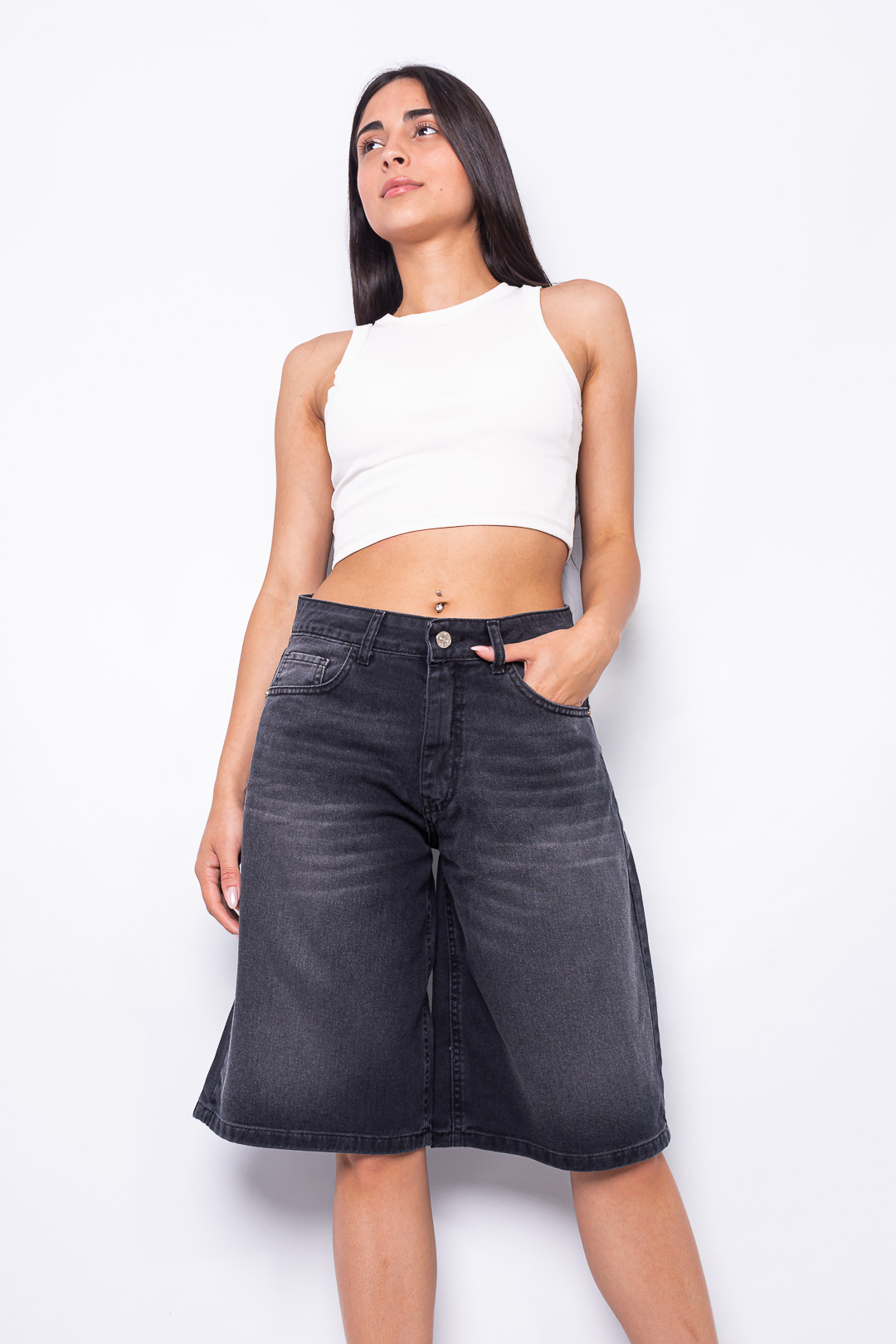 Bermuda rígido Frayed Waist black localizado ruedo Desflecado